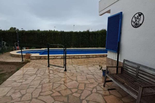 Das Grundstück ist ein Eckgrundstück von 574 m² mit Grillfläche und einem 9x5 Meter großen Schwimmbecken.