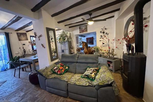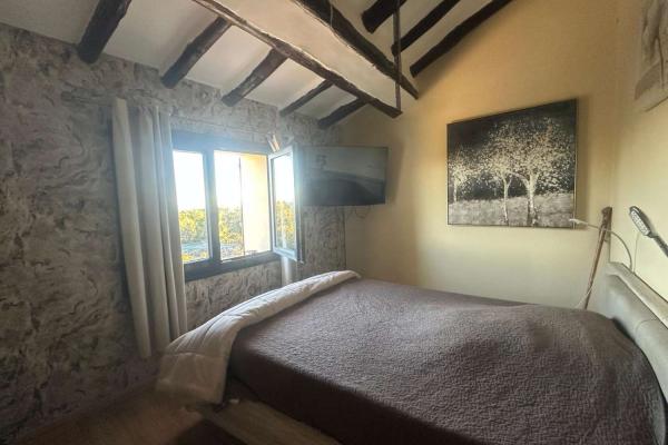 The property has a completely renovated main house, generously sized, distributed over two floors. On the ground floor there is a spacious living-dining room with a wood stove, a second living room perfect as a reading area or living room, a fully equipped kitchen, a guest toilet and a laundry room. On the upper floor there are three bedrooms, one of them en-suite with dressing room and private bathroom, and an additional bathroom.