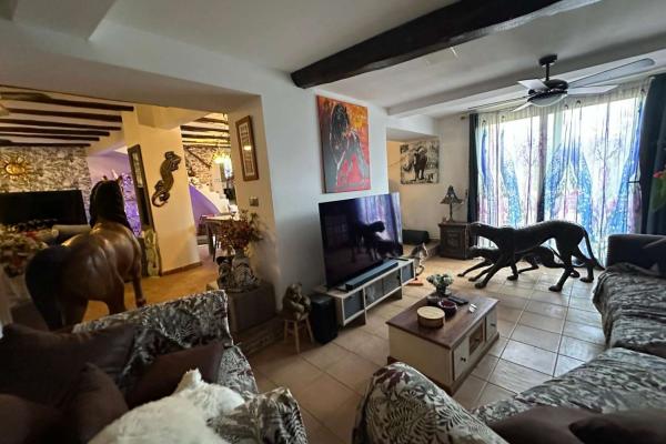 The property also has a 30 m² garage, two storage rooms, a large area for animals with a kennel and several parks for horses, donkeys or other animals.