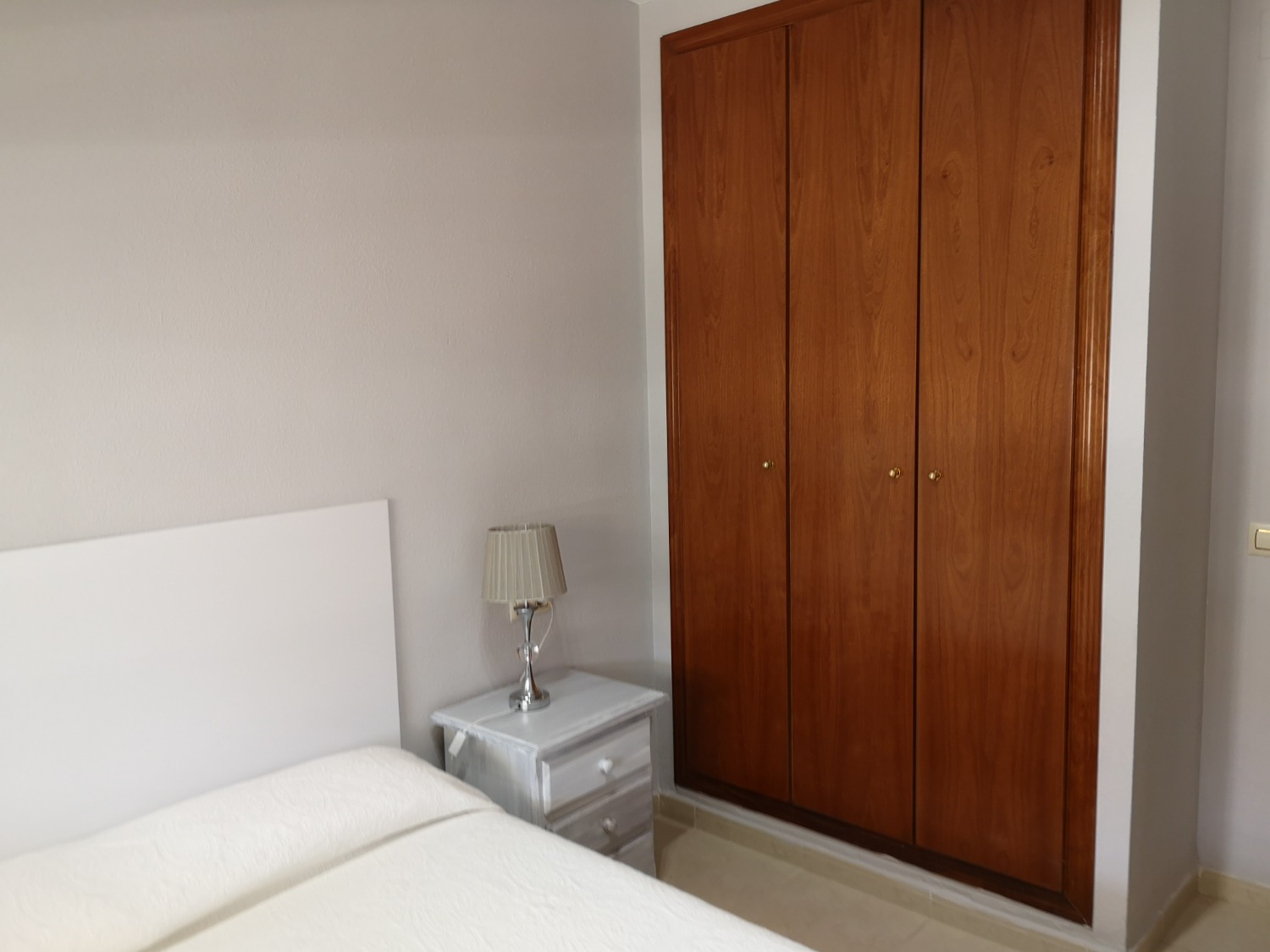 El apartamento tiene un gran salón-comedor, una cocina americana equipada y dos dormitorios con cama doble (en 150) con armario empotrado y un baño.