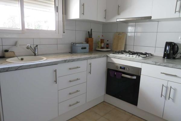 - de una cocina individual que tiene acceso directo al jardín y a la piscina.