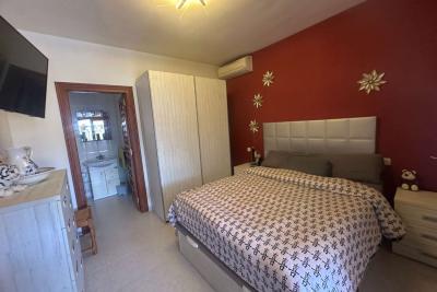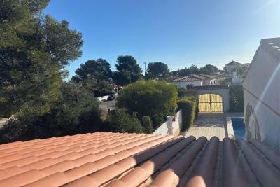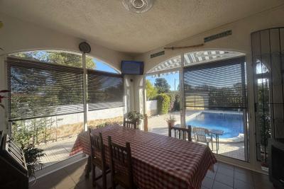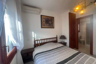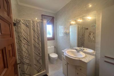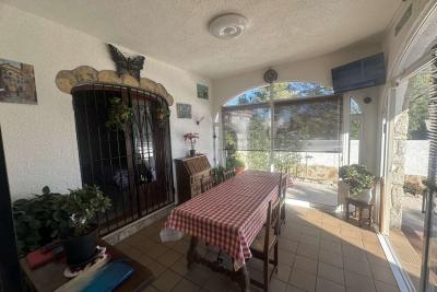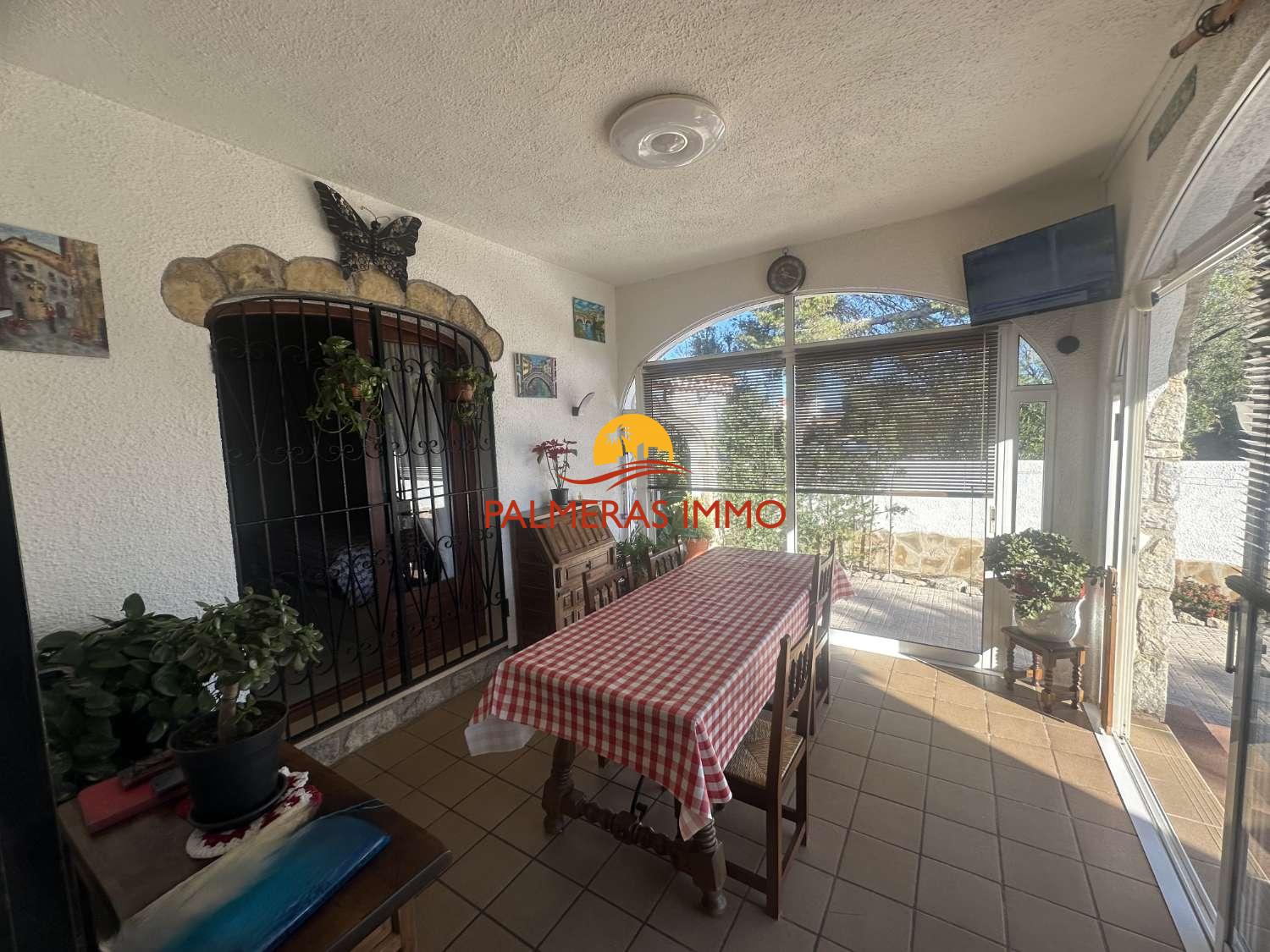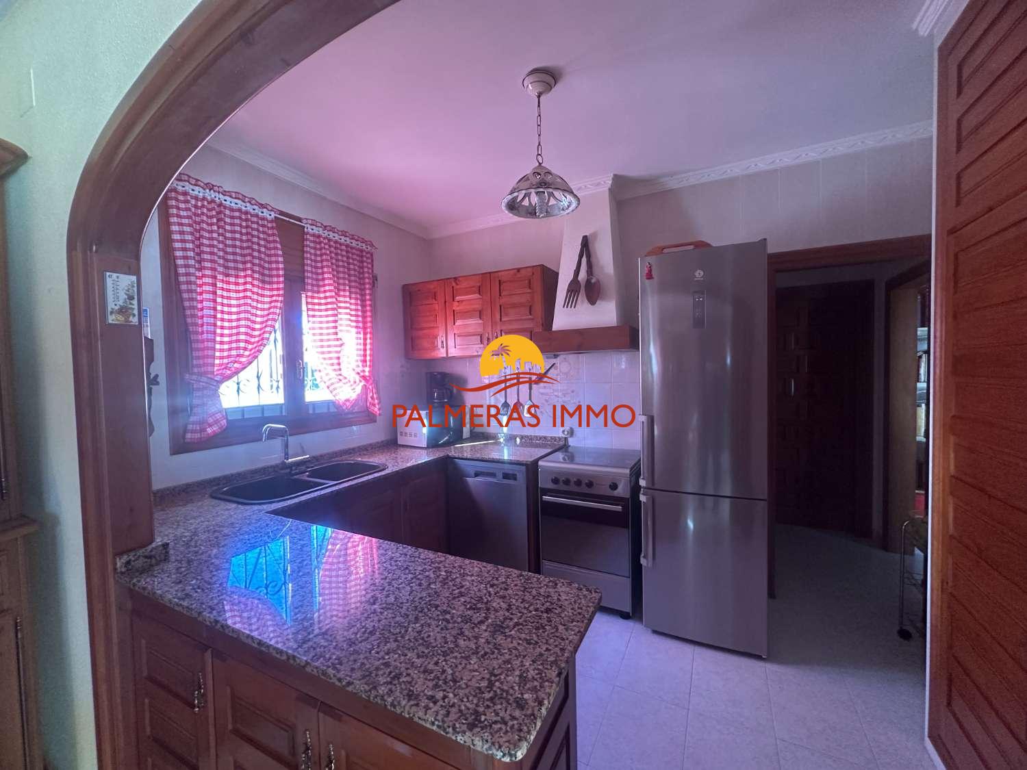 Se compone de un porche acristalado, un comedor - sala de estar con chimenea y aire acondicionado, una cocina abierta bien equipada, 3 dormitorios todos con aire acondicionado, 2 de los cuales son tipo suite, 4 baños completos. Un amplio garaje con solárium.