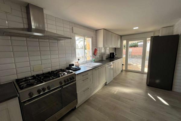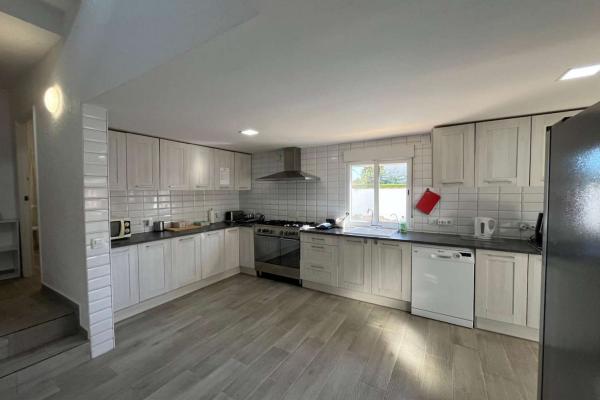 Gran cocina abierta amueblada con salida al jardín