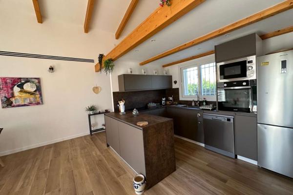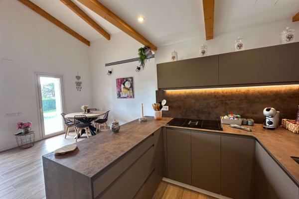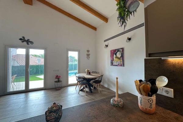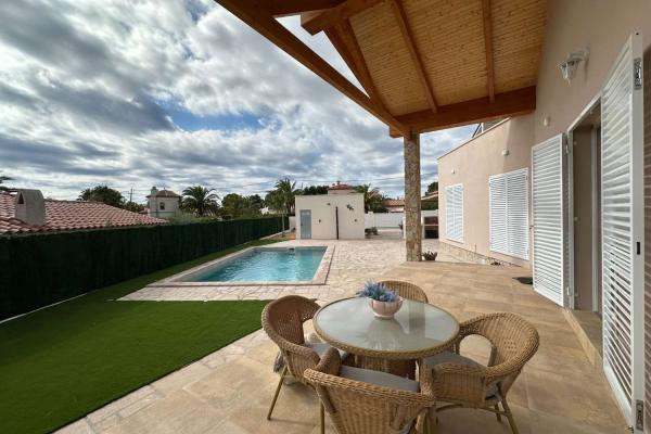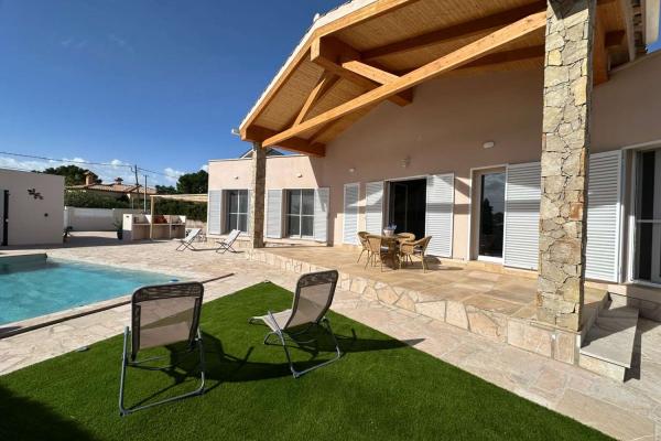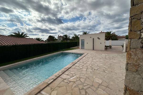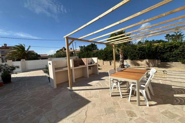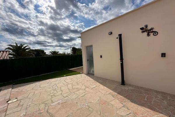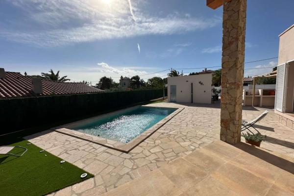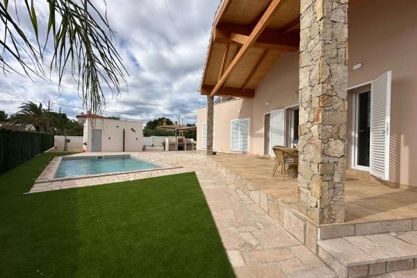 En la parcela de 810 m2 hay una hermosa piscina con sol todo el día, una cocina exterior, un amplio garaje y un aseo independiente.