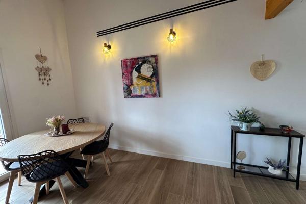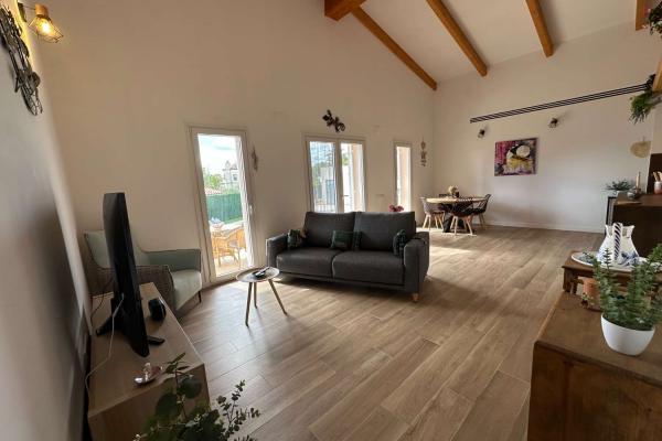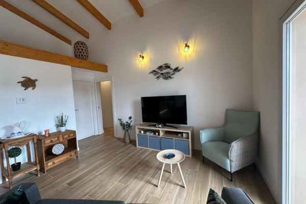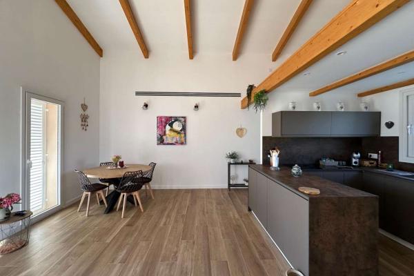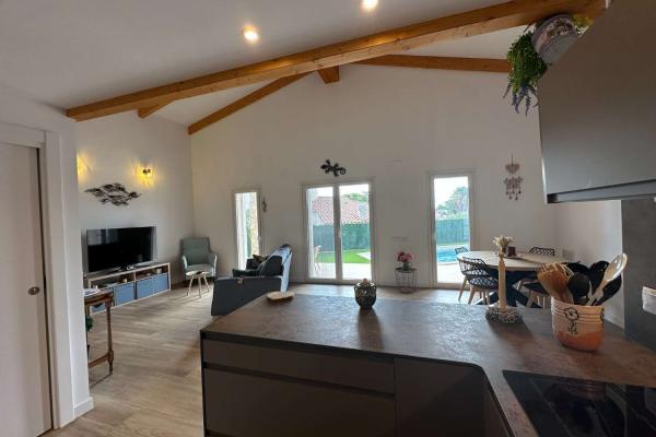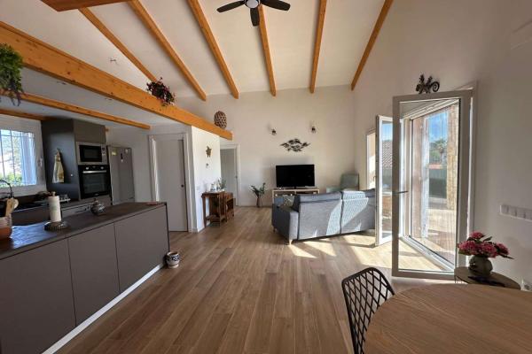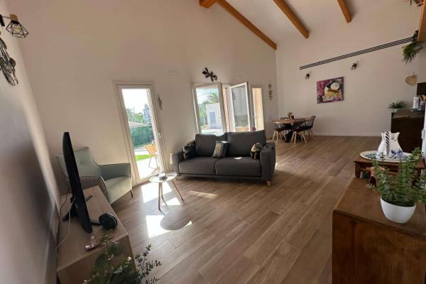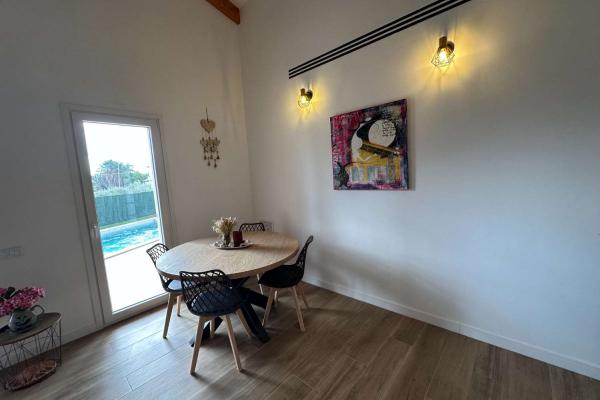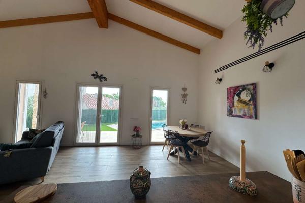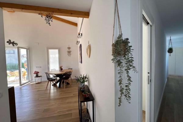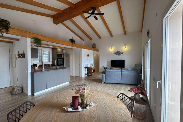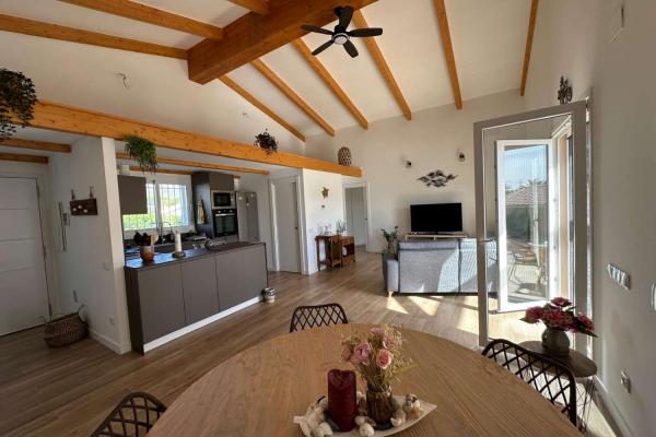 Está compuesto por un gran salón - comedor con salida directa a una gran terraza cubierta y vista a la hermosa piscina. La cocina moderna y bien equipada está abierta para una mayor convivencia. Junto a la cocina se encuentra el lavadero. Hay una toillette independiente para los huéspedes. Un amplio dormitorio tipo suite con toda una pared de armarios y su baño completo. Un segundo baño conduce a otros dos dormitorios grandes.